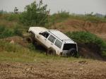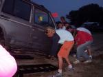 However his luck (or lack of) wasn't over yet. Ended up loosing the entire hub, broken the knuckel and all back at camp. Luckly they were not on the road, and we had the trailer right thier. Thanks to our Polish buds, we were able to get it onto the trailer.