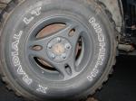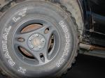 If you want cheap rims go to a junk yard and get stock mustang rims. Have them powder coated, or paint them yourself with a rattle can. I did this on my old XJ and it looks pritty good. I did have to grind down the center hole that fits onto the axle just a bit, prolly took 25 min. or so with a dremel, but only for the rears. Here are some pics of what my mustang rims look like and then my buddy's stock rims on his wrangler repainted. Keep in mind that they are both dirty and do actually shine up and look pritty.