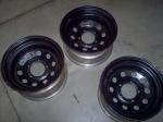 I have a set of four 15x8 rims. 5-lug bolt circle that has a 5.5inch lug diameter. The rims were originally off of a Jeep CJ. They have been painted black. One of the rims has been slightly bent on the outside flange of the rim.It does not effect it at all(see photo). Im asking $50.00 + shipping