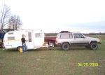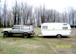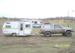 This is what I pull with my 90xj, could use more power on hills. And you want to plan your stops alittle head of time. But gets job done Ok. Gayla also pulls it with her 91 reneagade, but does better on xj. Its only 14ft. I really like the hitch, Meijer for $100, adjustable us it all the time on my rigs.