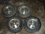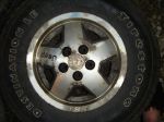 Stock tires and wheels for sale. Wheels are stock aluminum and look ok. Google Image pic below of wheel style. Tires are 235/65/15 Firestone Destination LE. They have about 50% tread left or more. One tire that was on the right/rear is a little more worn then others(not due to burnouts). All four wheels/tires hold air. Were on Jeep for about 12K miles.