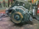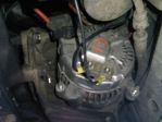 My alternator went out and I decided to upgrade. I looked around and found that an alternator from a '97-'98 V8 ZJ is 136amp compared to the 90amp from my stock. With the recent addition of offroad lights and the hope of a system in the future I figured this was a good upgrade. To do this on a Renix XJ you need an alternator bracket from an HO XJ, a shorter serp belt(mine is 98in but I also have an A/C delete bracket), and a voltage regulator from an old Ford truck(AutoZone knew what I was talking about) it needs to have the terminals I A S F. Your HO bracket may need to be ground to fit the larger alternator, but mine fit. The wiring goes as follows: the power out(red one) wire bolts on pretty much the same way to the alternator, there is one pair of field termials on the back about 1.5in apart one goes to ground and the other goes to F on the regulator, the yellow wire from the stock plug goes to A, and S goes to an accessory wire, I is unused on the regulator. My headlights seem a little brighter after the mod. The pics are of the HO bracket and the ZJ alternator. I forgot to take more, but I will try to add some later.